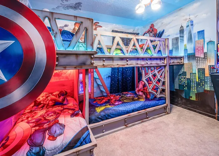 Located in the Sea World Orlando district, the 8-bedroom Luxury Meets Adventure 8Br Condo With Themed Rooms villa invites guests to relax by an indoor swimming pool or enjoy an indoor pool. Offering Wi-Fi, the accommodation is located 2.8 km from Aquatica.